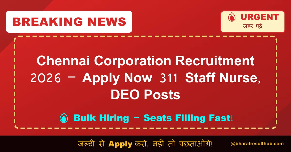 Chennai Corporation Recruitment 2026 – Apply Now 311 Staff Nurse, DEO Posts