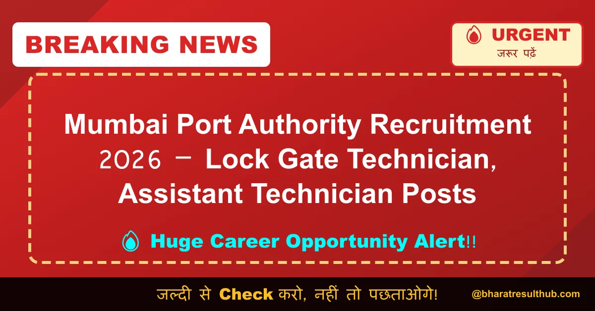 The Mumbai Port Authority has released the official notification for the recruitment of Lock Gate Technician and Assistant Technician posts. Eligible candidates can apply offline through the official website by 13 April 2026.