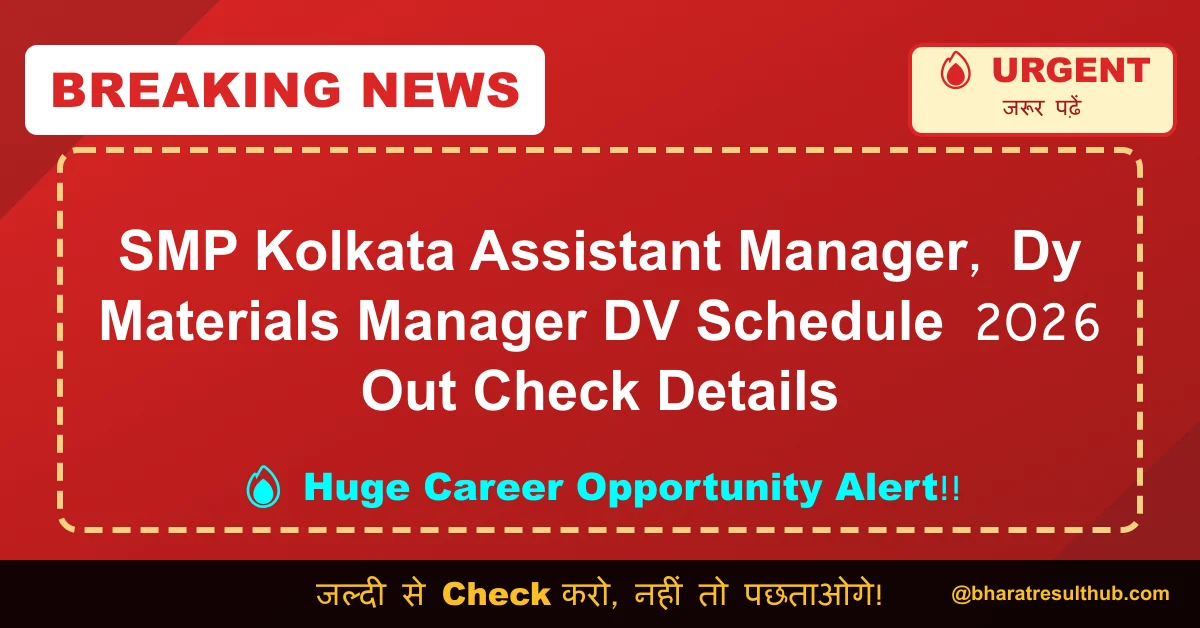 SMP Kolkata Assistant Manager, Dy Materials Manager DV Schedule 2026 Out Check Details